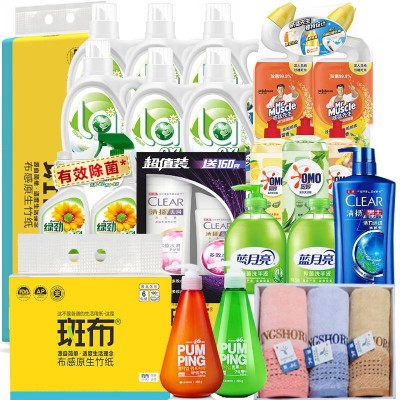 威露士甄选洗衣液+洗洁精+去重油剂+洁厕剂+洗手液+洗发水+牙膏+面巾纸+手纸+毛巾礼盒套装商品
