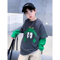 儿童春秋装新款潮牌炸街大男童装假两件t恤卡通长袖纯棉上衣