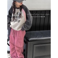 韩国童装女童卫衣加绒加厚冬装新款儿童洋气插肩袖秋冬上衣潮