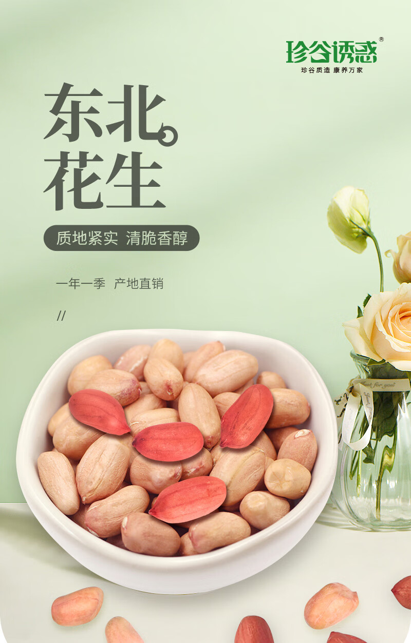 珍谷诱惑 东北生花生米(精品大粒白花生仁 生花生米 四粒红 当年新货) 白花生1kg