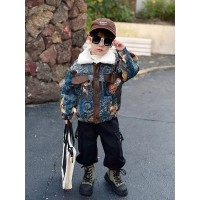 男童加绒外套新款男孩宝秋冬装痞帅洋气儿童加厚牛仔棉袄衣服潮