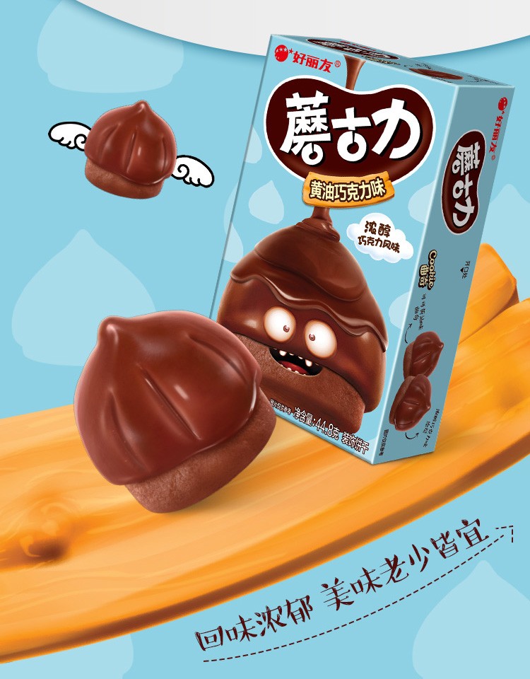 好丽友(orion)蘑古力三连包多规格蘑菇头饼干巧克力儿童饼干休闲零食 黄油巧克力44.8g*3盒