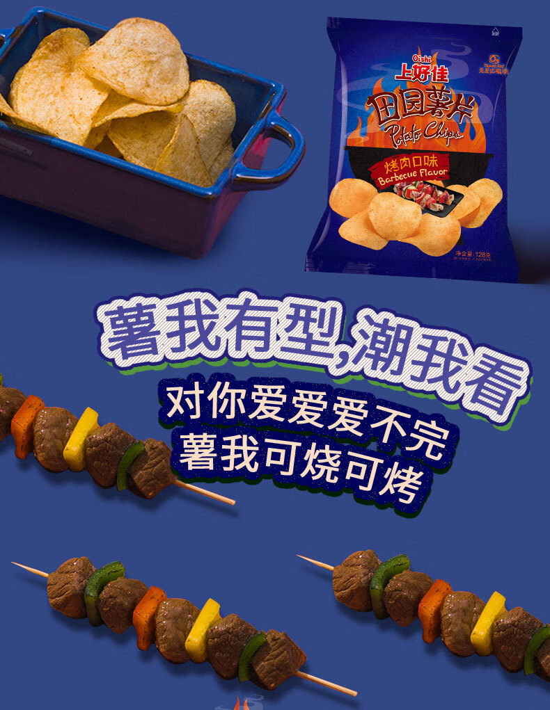 上好佳上好佳 膨化零食烤肉味 薯片袋装128g*1