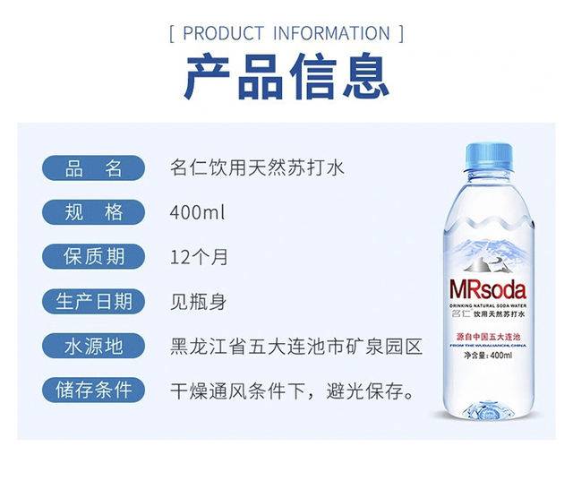 名仁五大连池弱碱性水400mL*6瓶无添加天然矿泉饮用水新包装