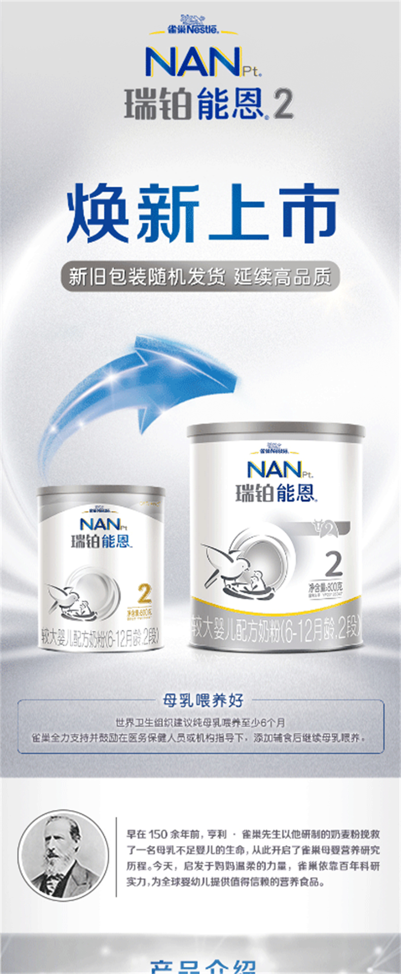 雀巢 (Nestle) 瑞铂能恩 A2蛋白 较大婴儿配方奶粉 2段 (6-12月适用) 800g/罐
