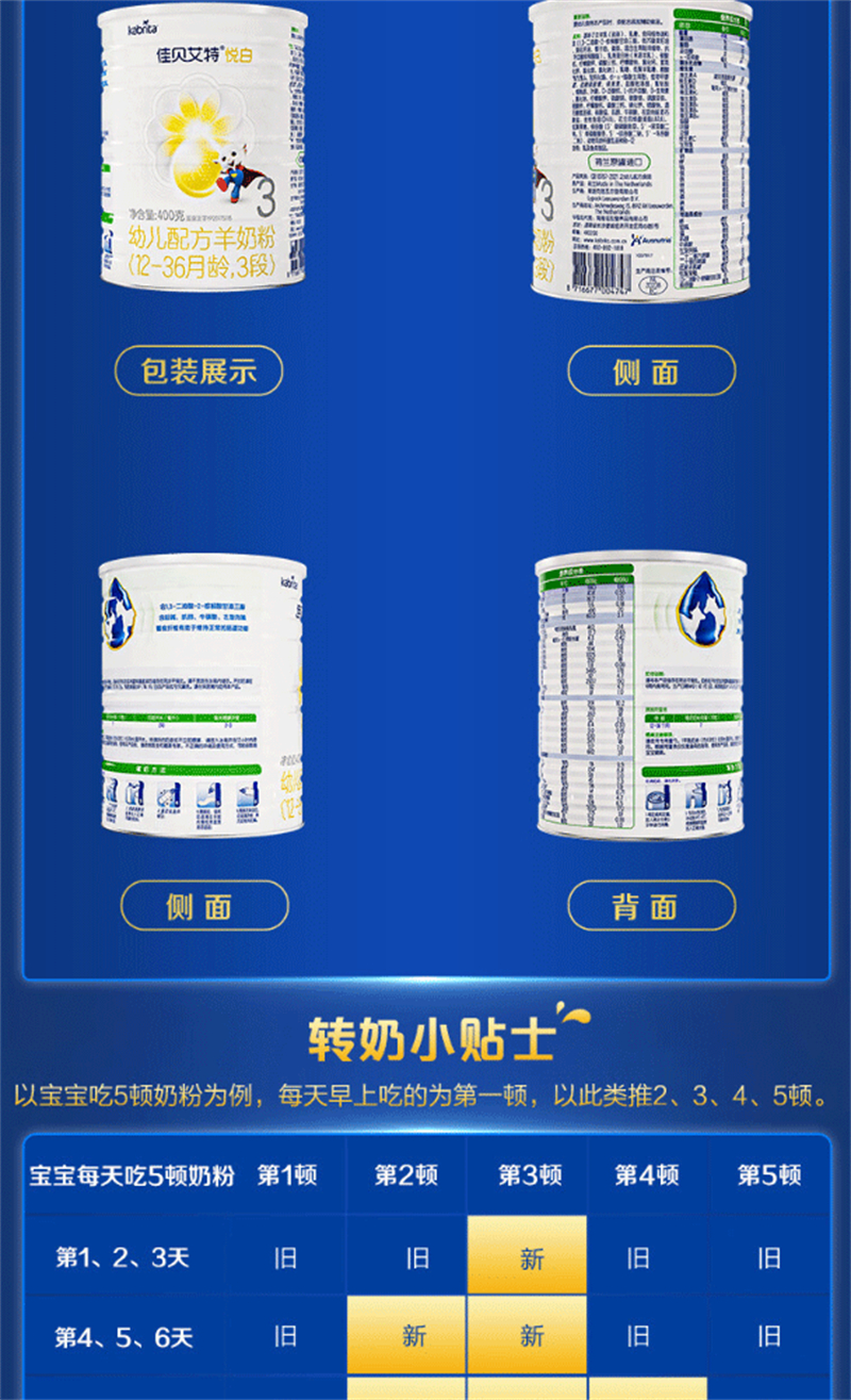 佳贝艾特(Kabrita)悦白幼儿配方羊奶粉 3段 (1-3岁婴幼儿适用) 荷兰原装进口 400克/罐