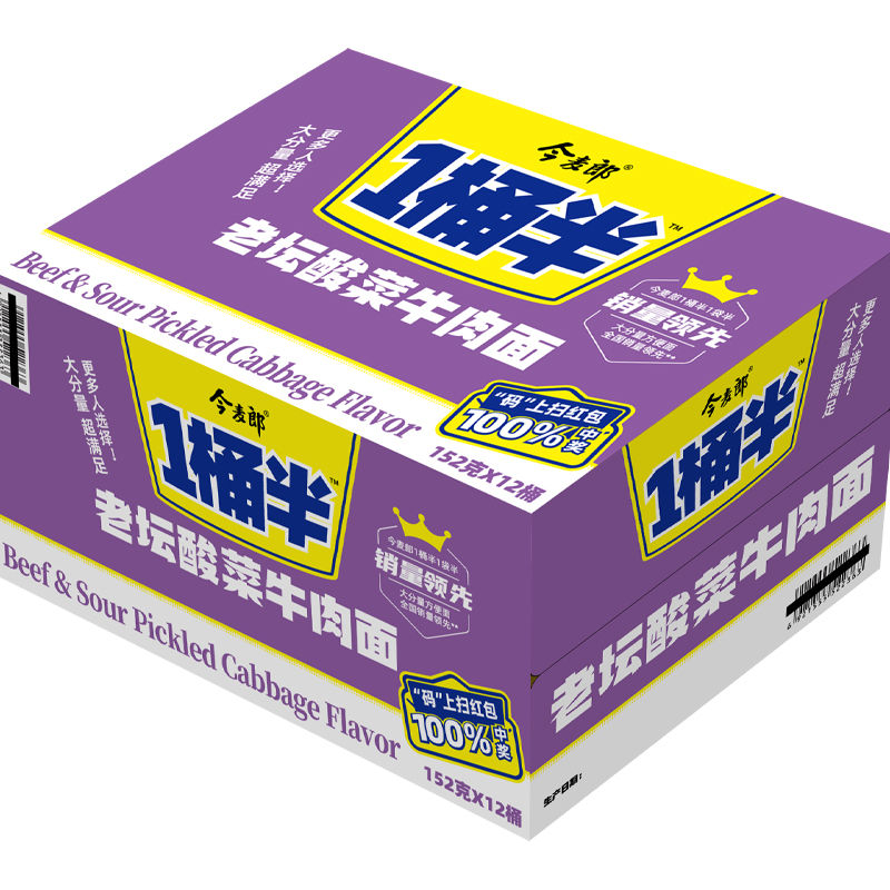 今麦郎方便面一桶半泡面老坛酸菜麻辣牛肉香辣牛肉12桶