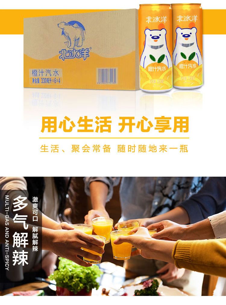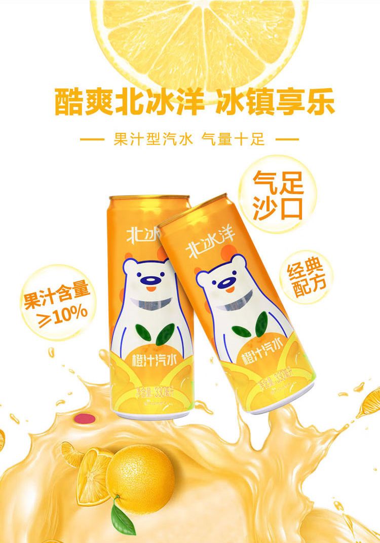 北冰洋橙汁汽水易拉罐装330ml*24听果汁碳酸饮料整箱装夏季饮品