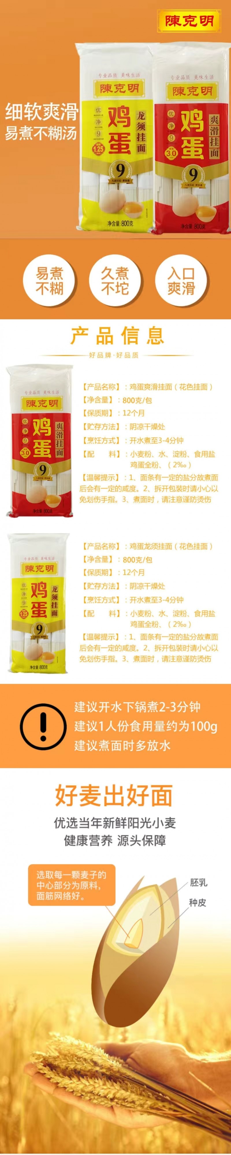 陈克明鸡蛋龙须挂面800g*2劲道龙须面速食挂面早餐鸡蛋