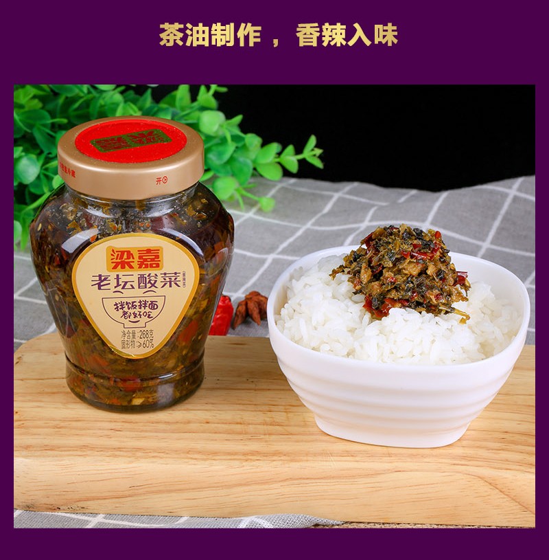 梁嘉老坛酸菜268g湖南宁乡土特产老式坛子菜香辣下饭配