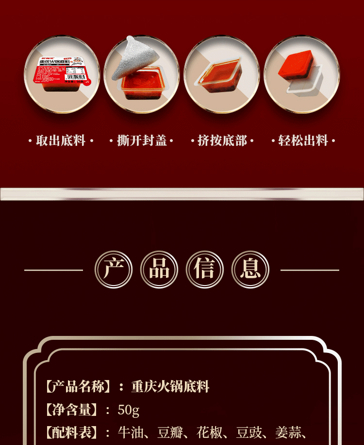 厨师兄火锅底料盒装重庆火锅四川冒菜烧鸡煮鱼炒菜底料家用小包装50g