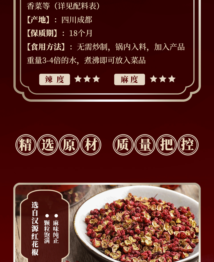 厨师兄正宗重庆花椒老火锅底料四川麻辣烫冒菜炒菜底料