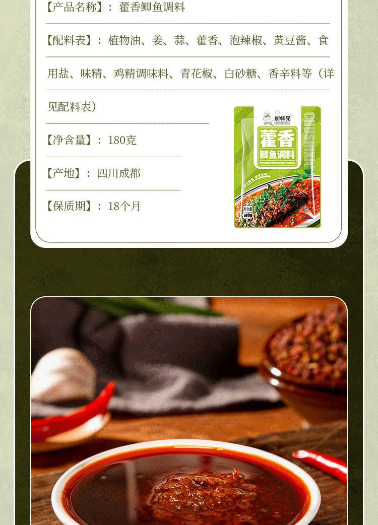 厨师兄川味藿香鲫鱼调料香时子董香鲤鱼河鲜海鲜类180g正品