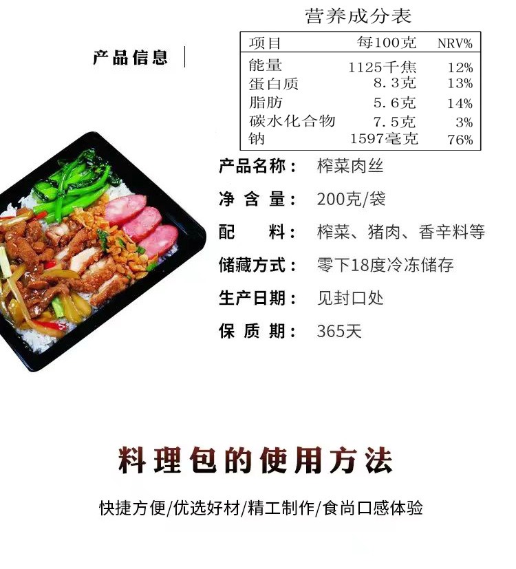 榨菜肉丝正宗川菜商用快餐菜包预制菜小碗菜料理包200g