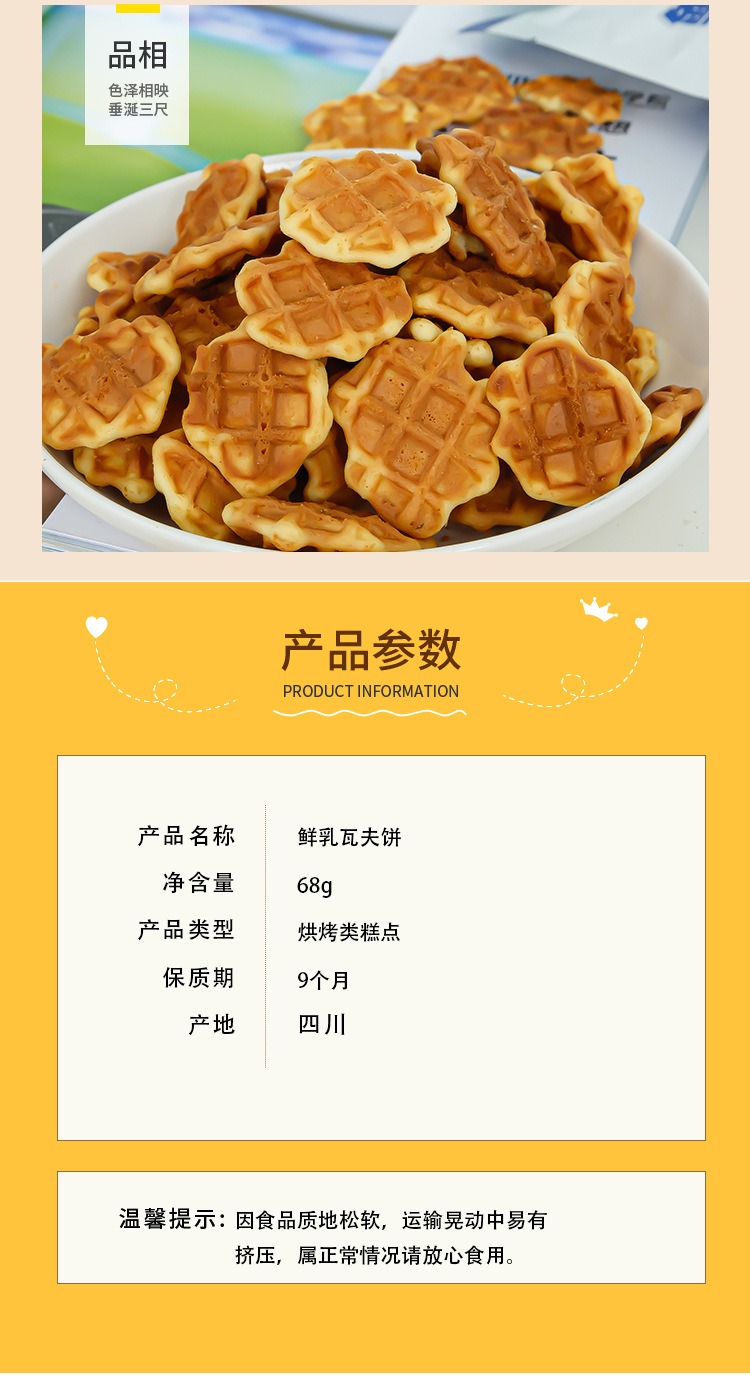 厂家直销煎饼鲜乳瓦夫饼1包*68g小吃零食饼干多种口味
