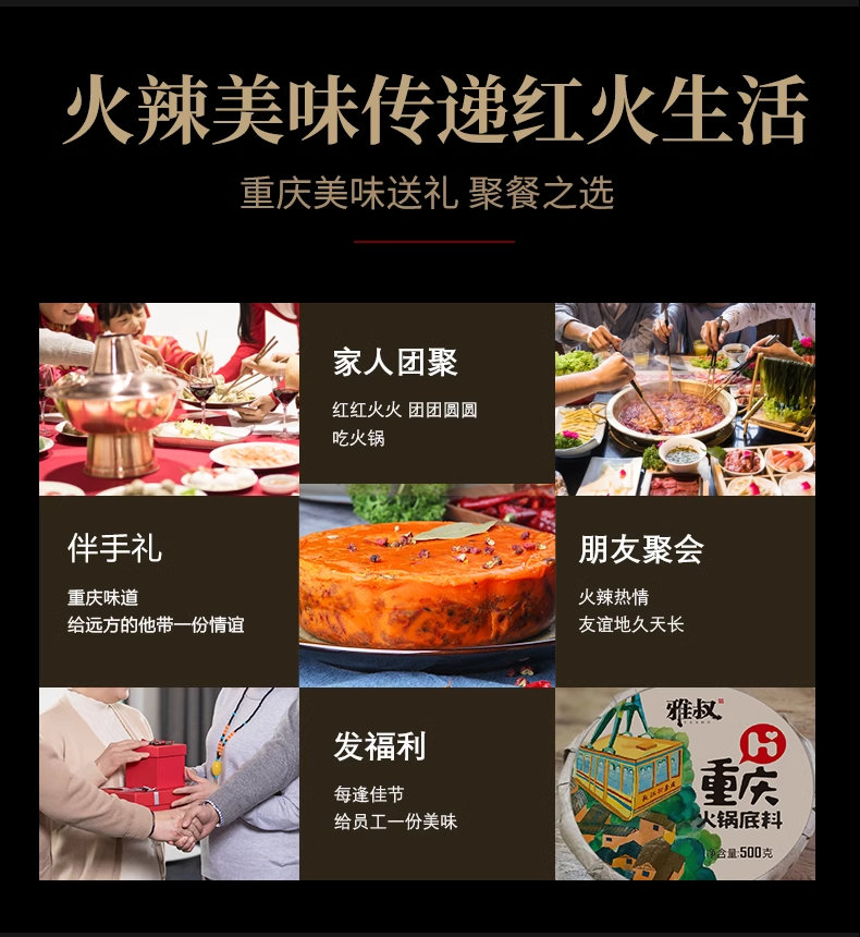 重庆火锅底料500g雅叔手工牛油火锅老火锅料麻辣烫调料四川特产