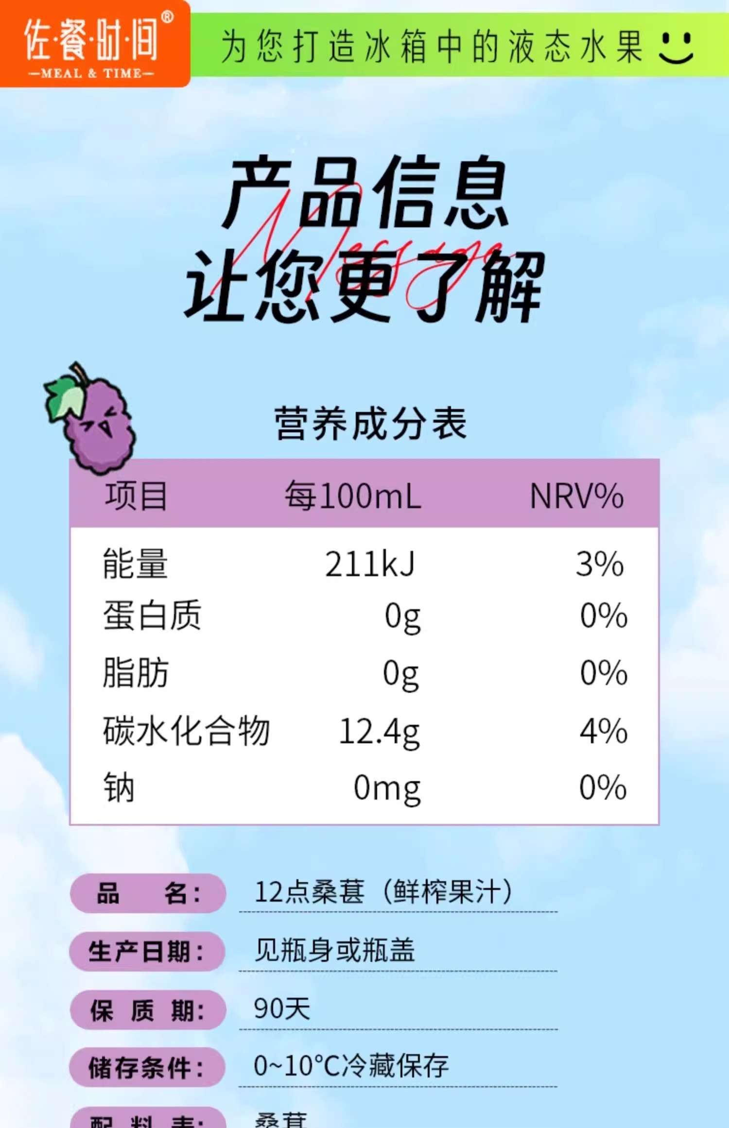 批发佐餐时间桑椹汁NFC+HPP百分百纯果汁冷压榨冷藏饮料