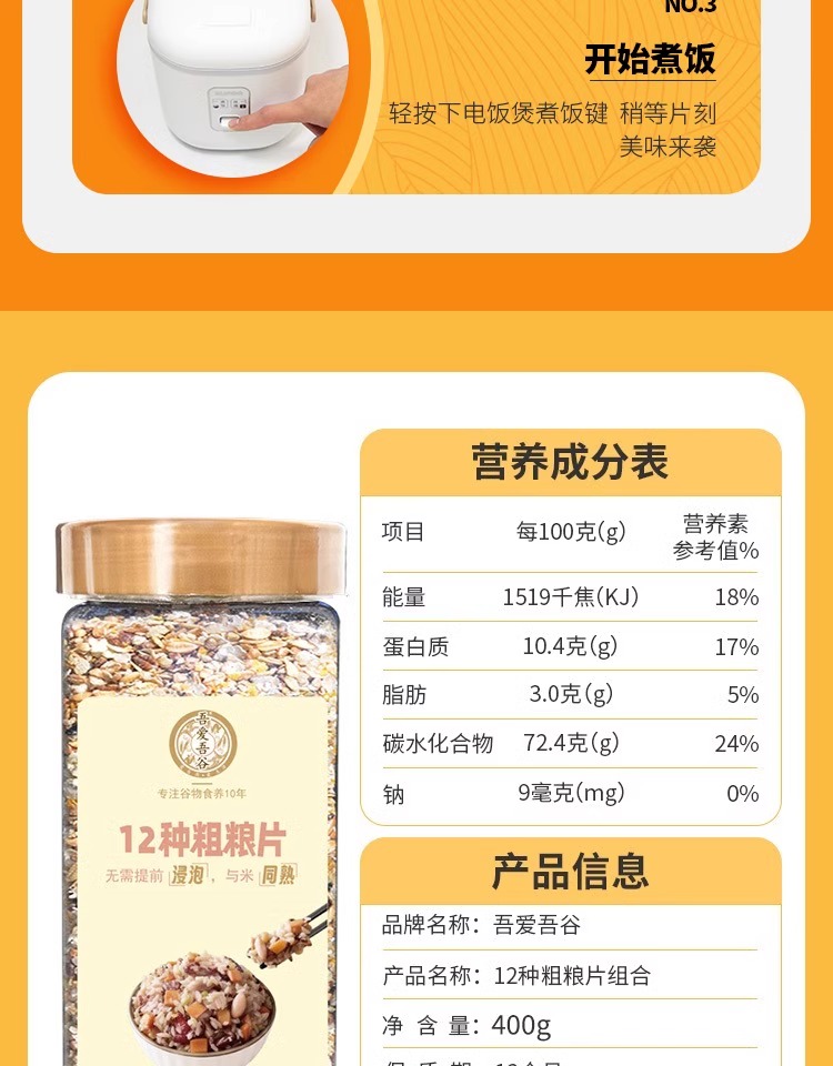 卖点:免泡 与大米同煮同熟三步搞定粗粮饭