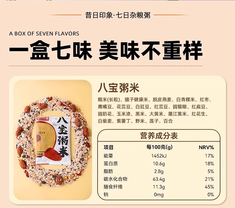 吾爱吾谷早餐七日杂粮粥糙米八宝粥米腊八粥五谷杂粮主食健身代餐营养粥料