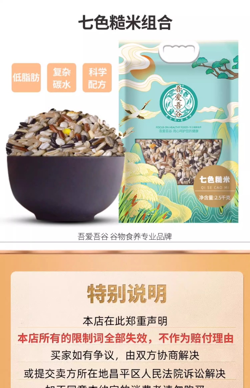 卖点:低脂肪真七色糙米 复杂碳水 适合糖友胖友