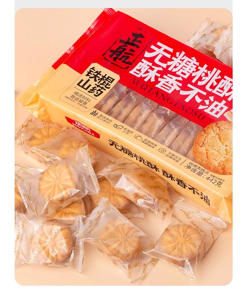 正航无糖桃酥铁棍山药藜麦谷物鲜蛋黑杂粮多口味糕点独