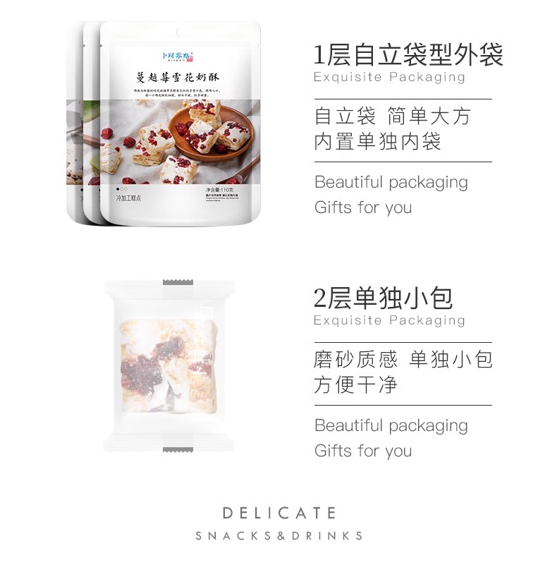 卜珂零点牛轧雪花酥手工自制牛轧奶芙糕点110g 网红零食牛扎糖混合袋装