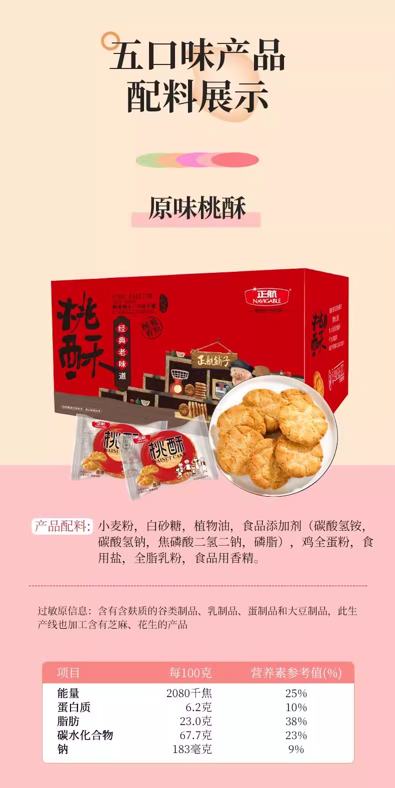 正航原味芝麻坚果水果桃酥营养无糖糕点传统宫廷独立小