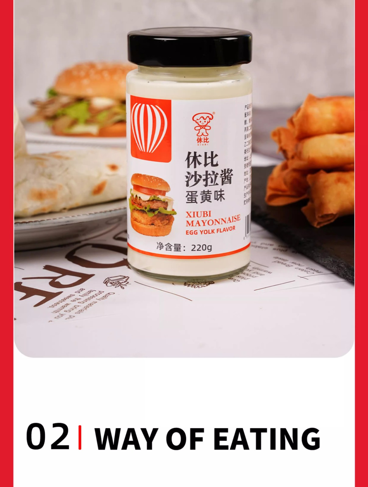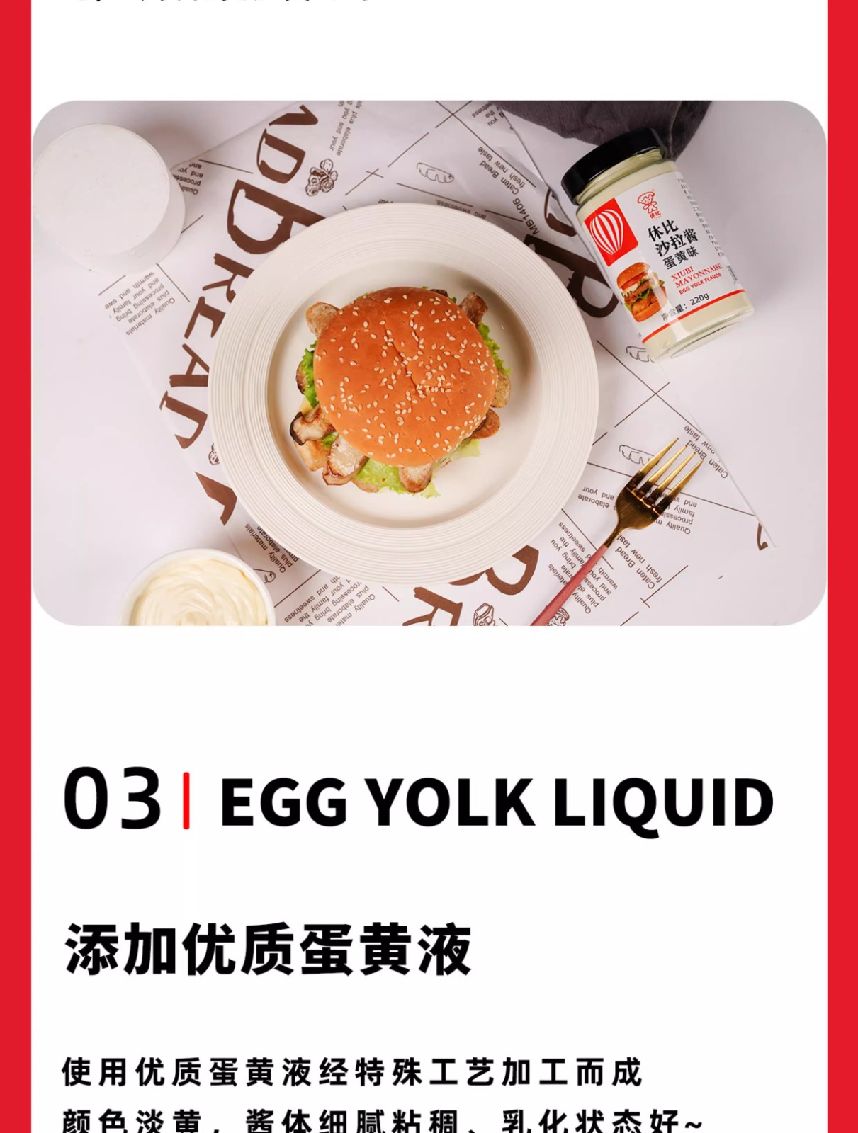 休比蛋黄味沙拉汁220g瓶装蔬菜水果寿司牛扒面包三明治汉堡卷饼汁
