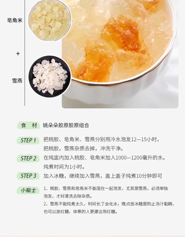 姚朵朵桃胶雪燕皂角米双荚105g胶原组合三宝可搭配银耳莲子羹