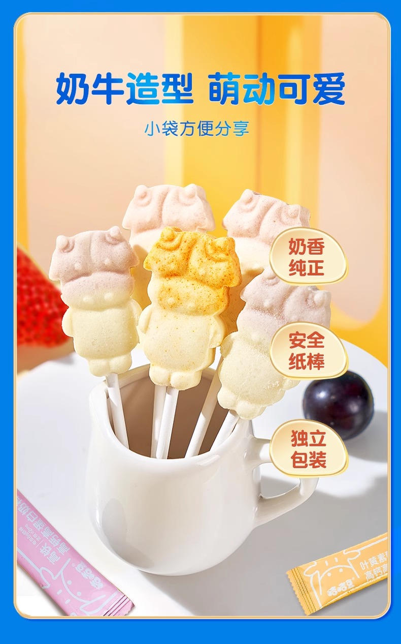 咭咭豆DHA奶棒0蔗糖高钙牛奶棒奶片零食儿童棒棒糖高铁叶黄素奶糖48g