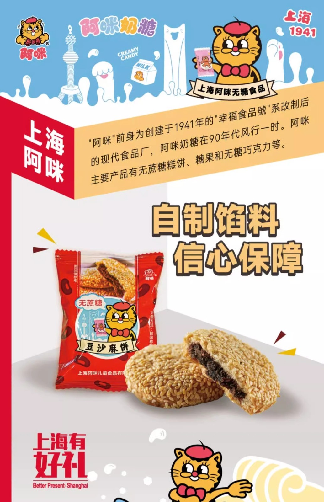 阿咪食品旗舰店 无蔗糖豆沙麻饼糕点上海传统豆沙馅饼糕点心250克