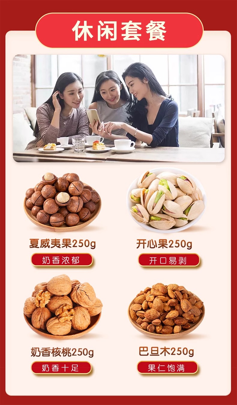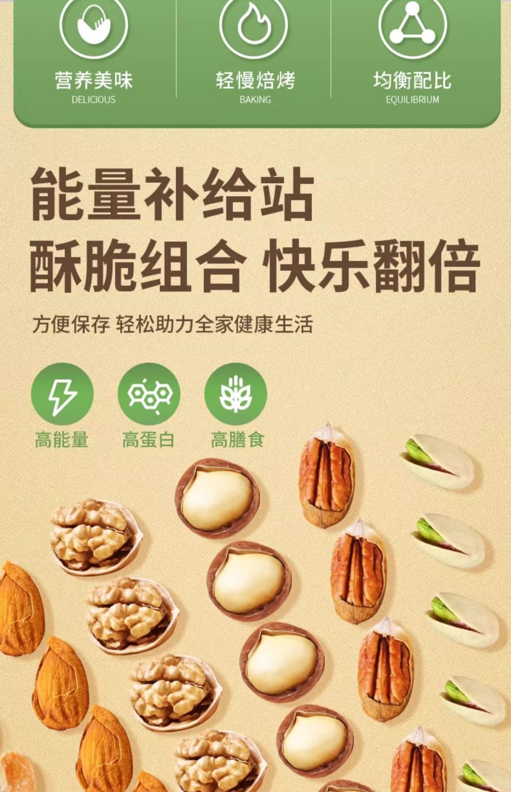 【纯坚果3斤】夏威夷果+开心果+奶香核桃+巴旦木+碧跟果+炭烧腰果