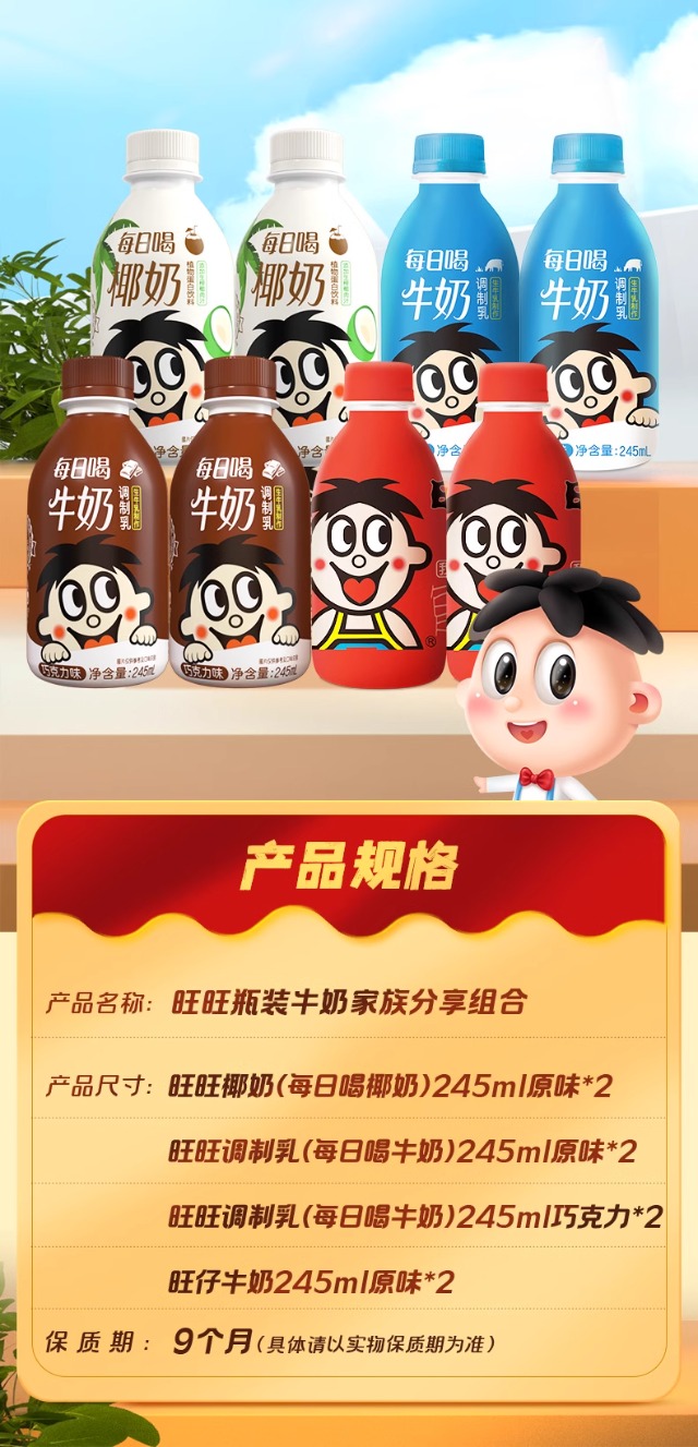 旺旺旺仔牛奶瓶装牛奶每日喝牛奶椰奶饮品家族组合