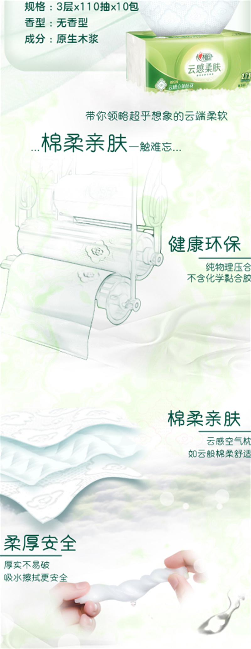 心相印茶语丝享系列3层纸面巾S码110抽*10包
