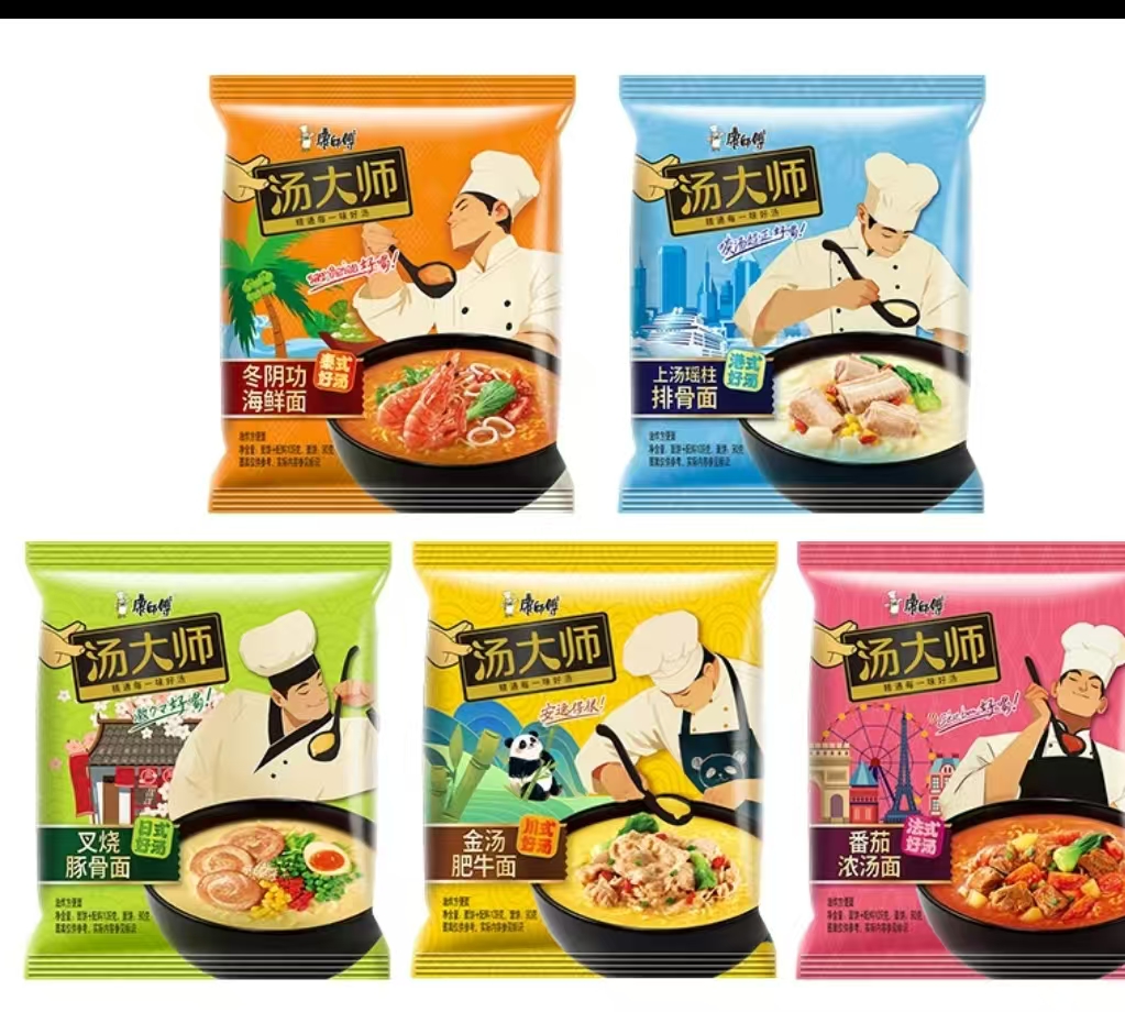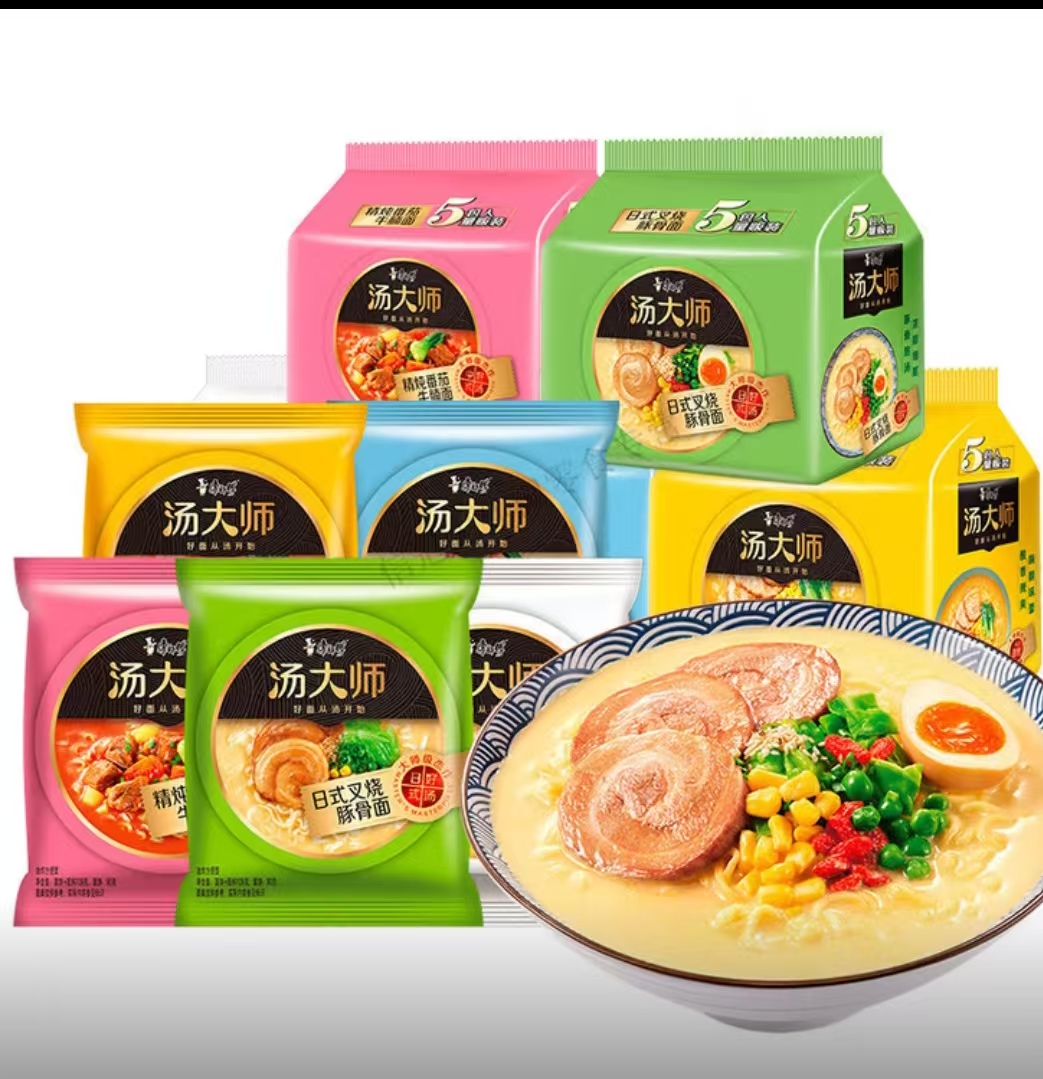 康师傅汤大师日式叉烧豚骨方便面 五连包装 金汤肥牛面 番茄浓汤面 叉烧豚骨面 上汤瑶柱排骨面 冬阴功海鲜面