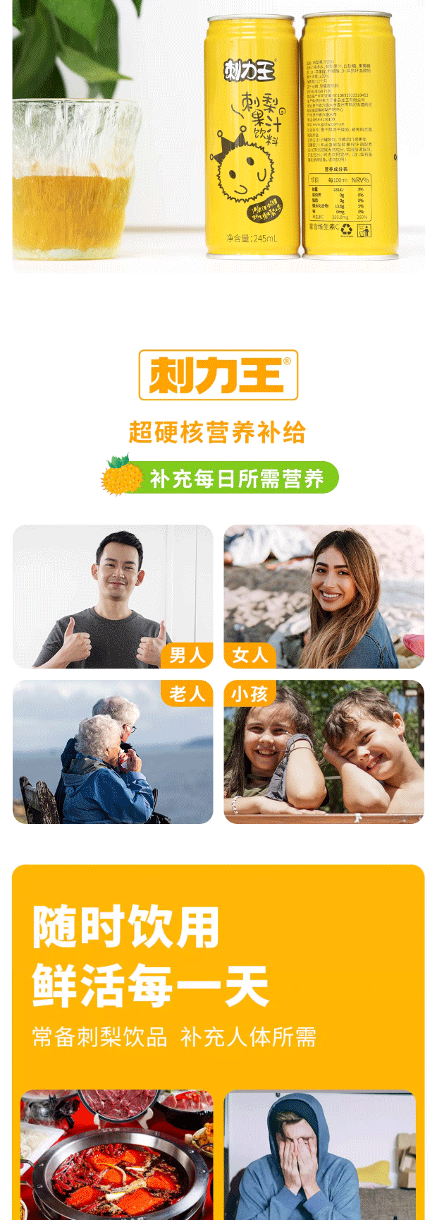 刺力王 刺梨果汁饮料贵州特产高维C无色素0脂肪网红饮品245ml罐装