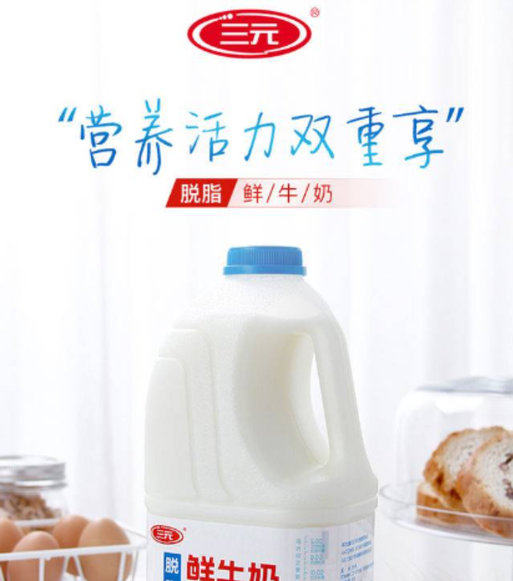 三元脱脂鲜牛奶 1.8L*6盒 整箱装