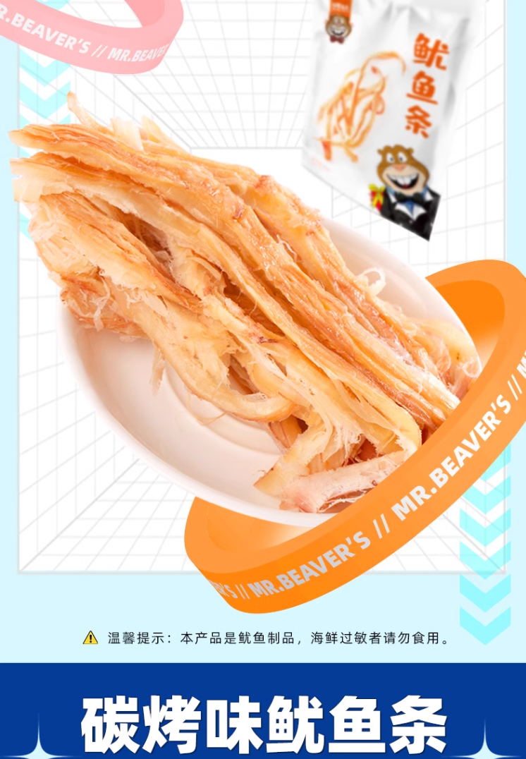 海狸先生手撕鱿鱼条墨鱼干80g*1袋鱿鱼丝儿童孕妇高蛋白海鲜零食
