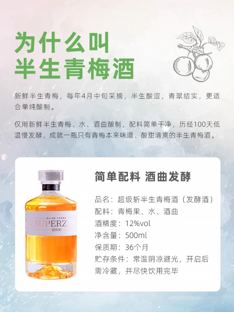 卖点:雪山半生青梅酒 酸甜清爽 梅香悠长