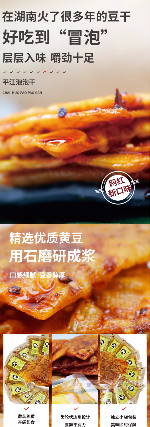 湖南平江泡泡干特产豆干小零食鱼豆腐豆皮辣条零食豆腐皮豆制品15g*10包