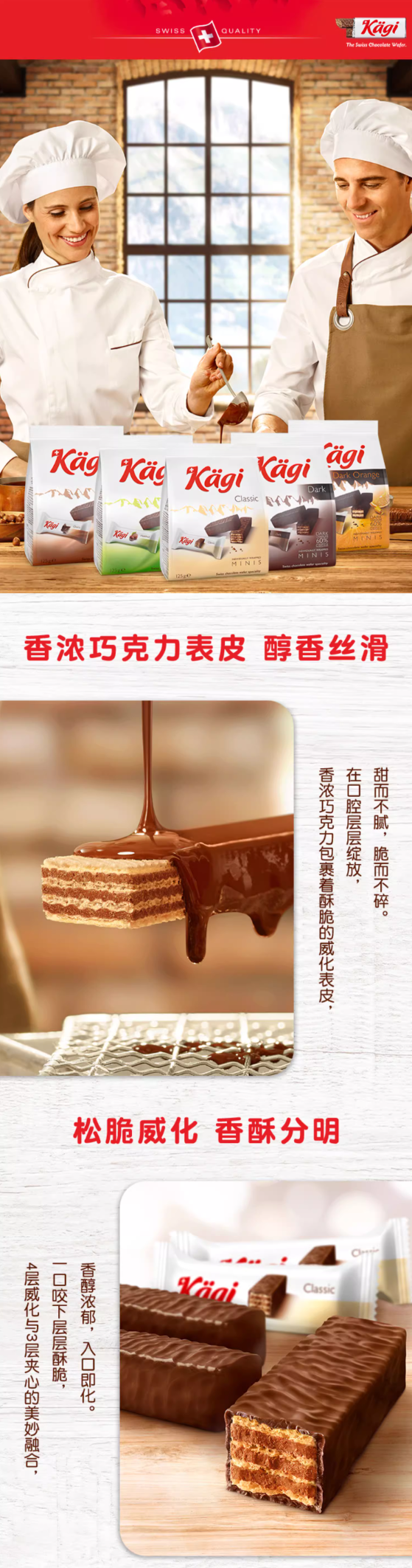 卖点:瑞士kagi巧克力威化饼干