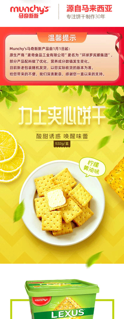 进口马来西亚马奇新新柠檬黄油夹心饼干礼盒囤货点心休闲零食532g