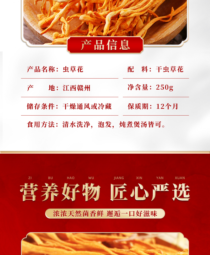卖点:精品虫草花 煲汤好伴侣