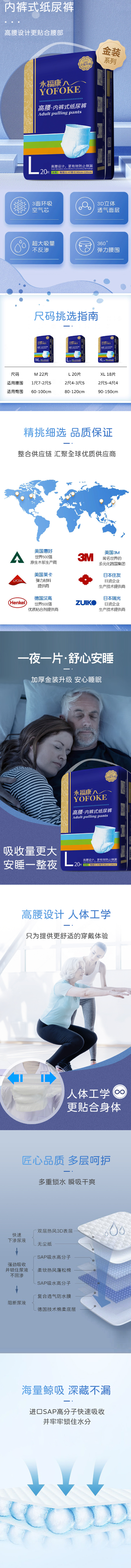 永福康成人拉拉裤L20片(腰围80-120cm)老人尿不湿孕产妇内裤型