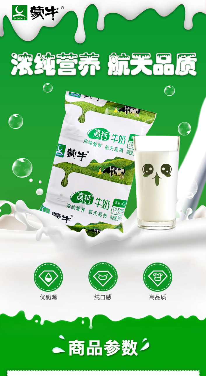 品名:蒙牛高钙牛奶利乐枕
