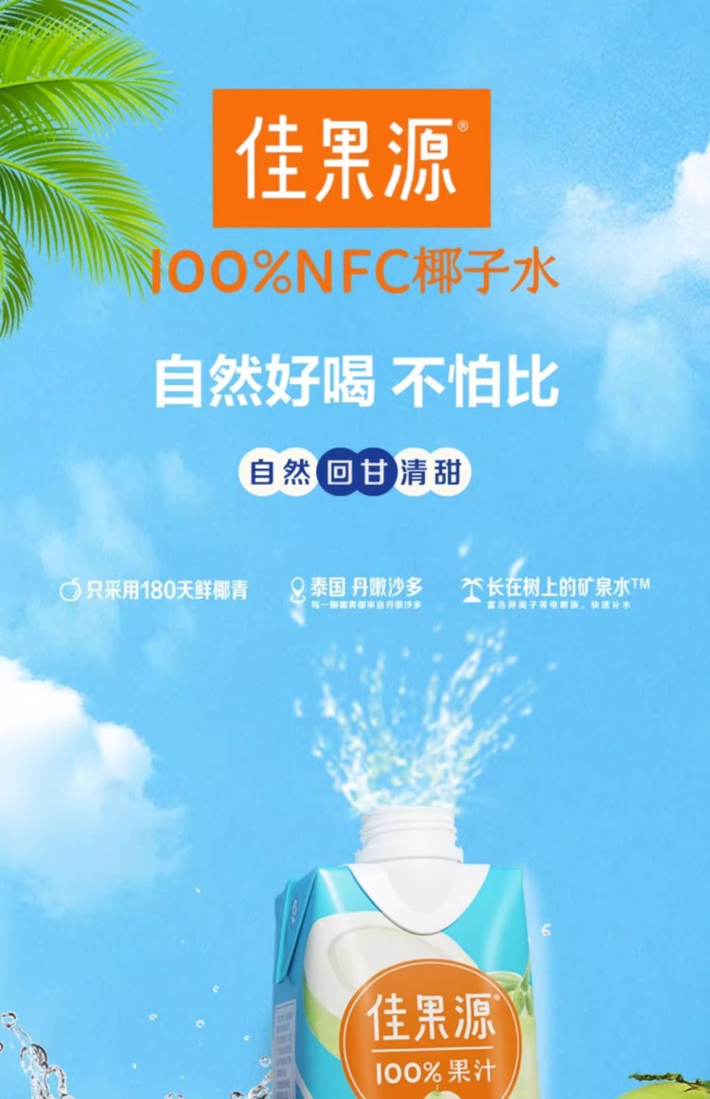 品名:富含天然电解质纯椰子水100%0脂0胆固醇