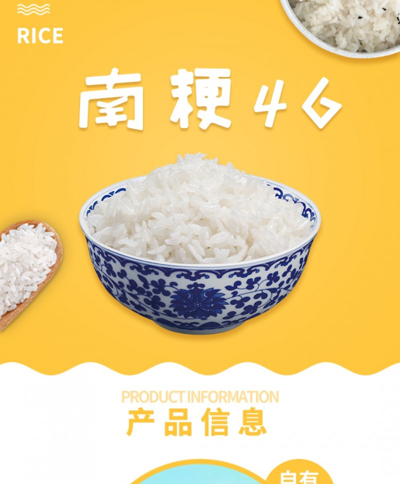 卖点:桃花瓣南粳46自然清香 细腻回香 颗粒饱满