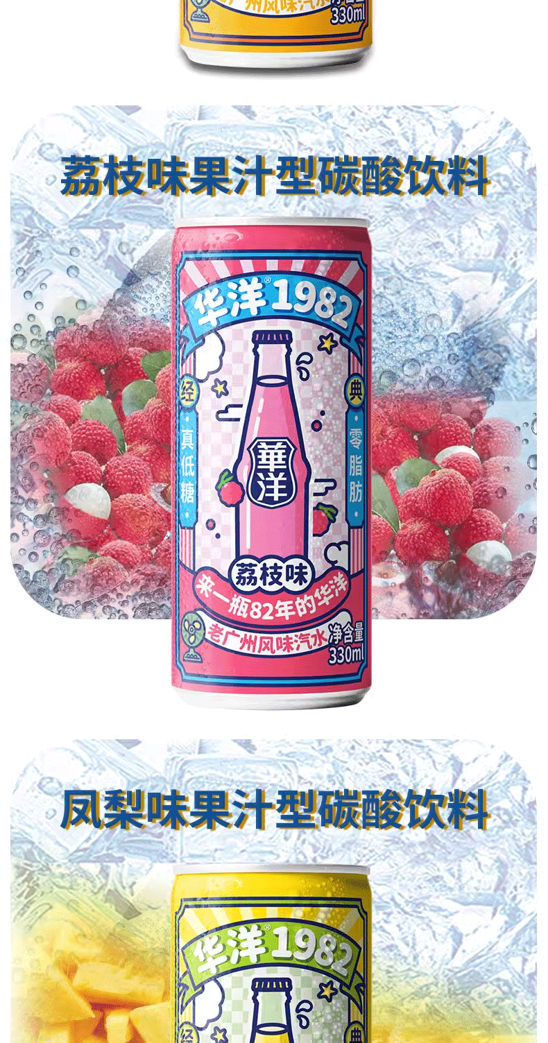 华洋汽水果汁型碳酸饮料330ml*6罐整箱装低糖0脂肪网红饮品