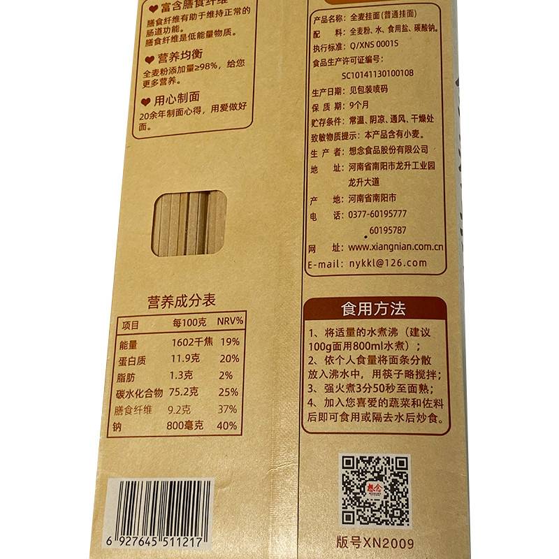想念全麦挂面800g/袋 杂粮挂面营养低脂