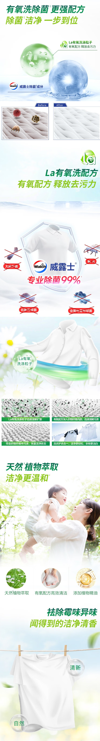 威露士洗衣液持久留香型La 有氧洗抑菌除螨松木清香2L机洗手